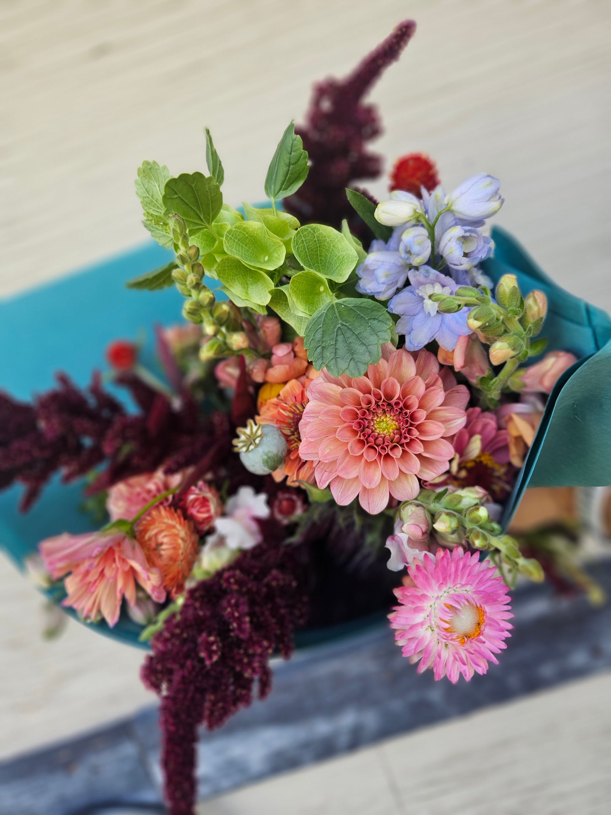 This subscription will run in August and September and will feature mixed bouquets that showcase all of the late summer stars like zinnias, cosmos, celosia, hydrangea and bits of this and that.
